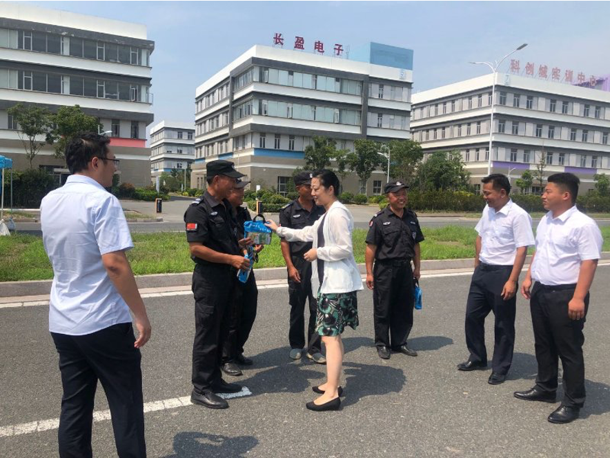 本次高溫慰問活動(dòng)由產(chǎn)業(yè)公司副總經(jīng)理尤麗華帶隊(duì),深入工作一線,分別向教學(xué)區(qū)、產(chǎn)業(yè)區(qū)及十里藍(lán)院一線保安、保潔等工作人員送上防暑降溫慰問品。
